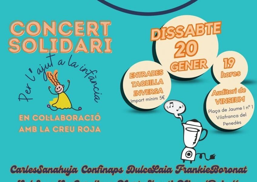 L’Associació Cultural La Trituradora Creativa es presenta amb un concert solidari, en benefici de la Creu Roja de Vilafranca del Penedès, amb l’objectiu de recaptar fons per l’ajut a la infància. Els artistes que componen l’entitat protagonitzaran un esdeveniment ple de música, solidaritat i somriures.